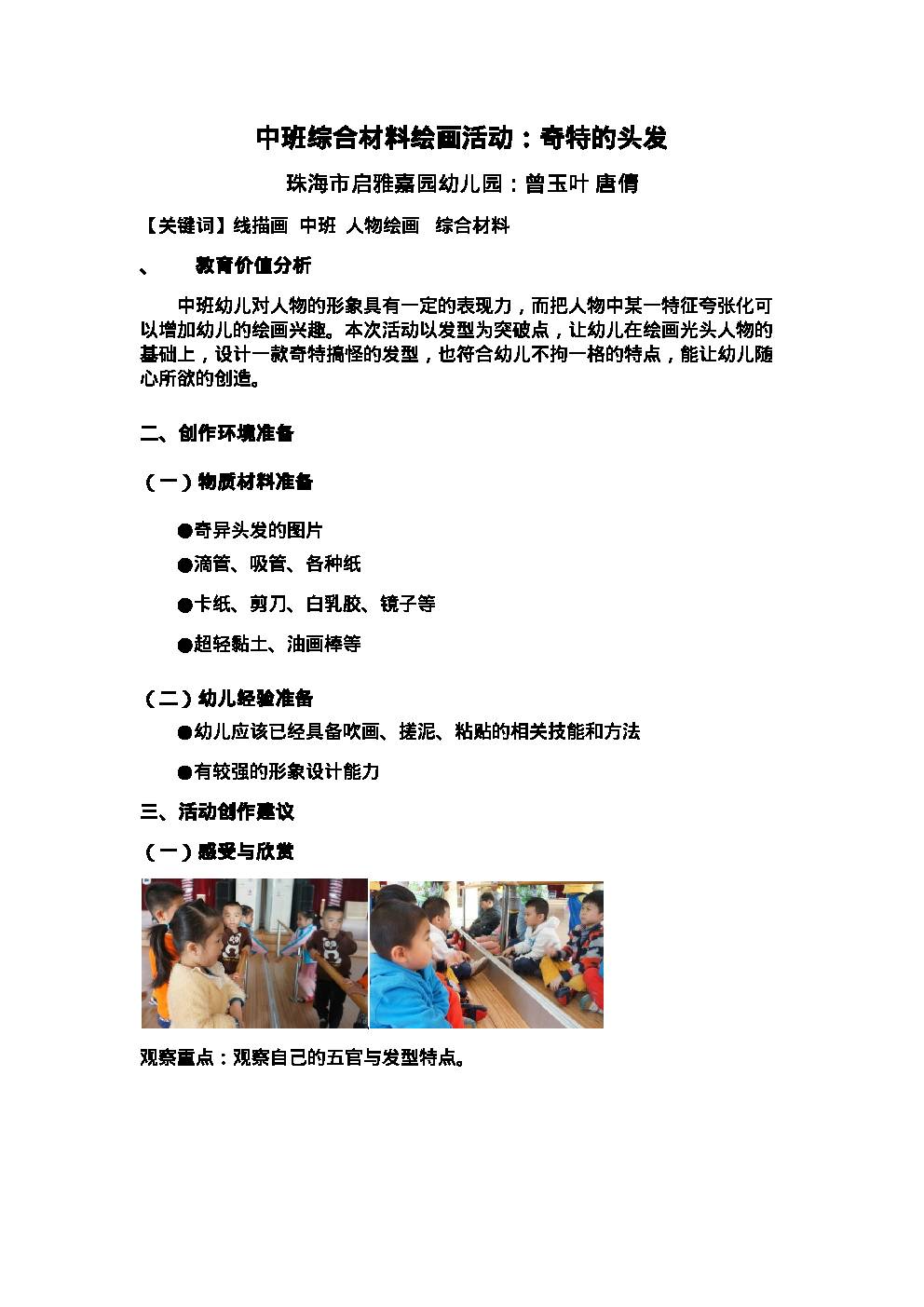 中班综合材料活动4 奇特的头发
