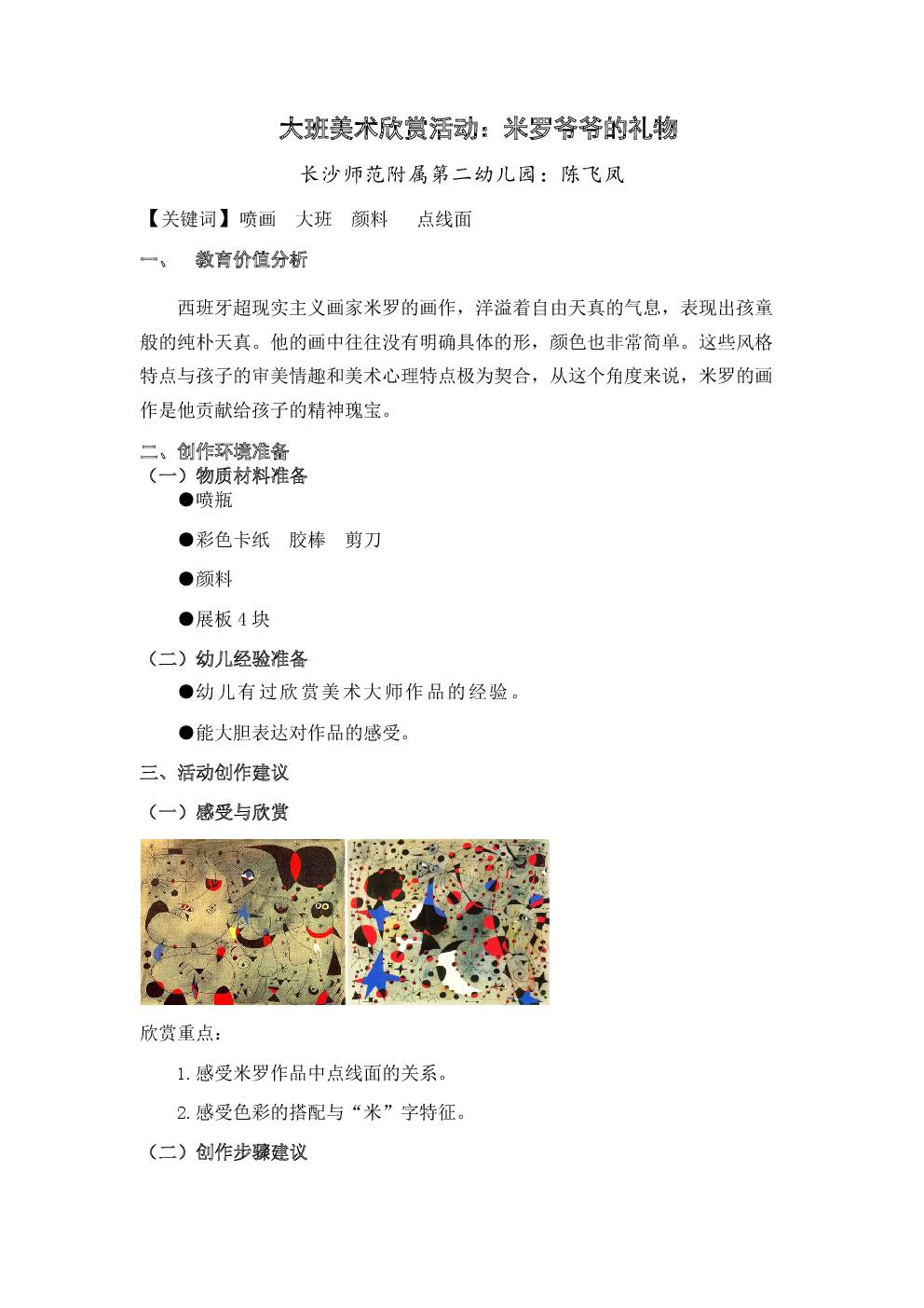 大班美术欣赏活动7 米罗爷爷的礼物