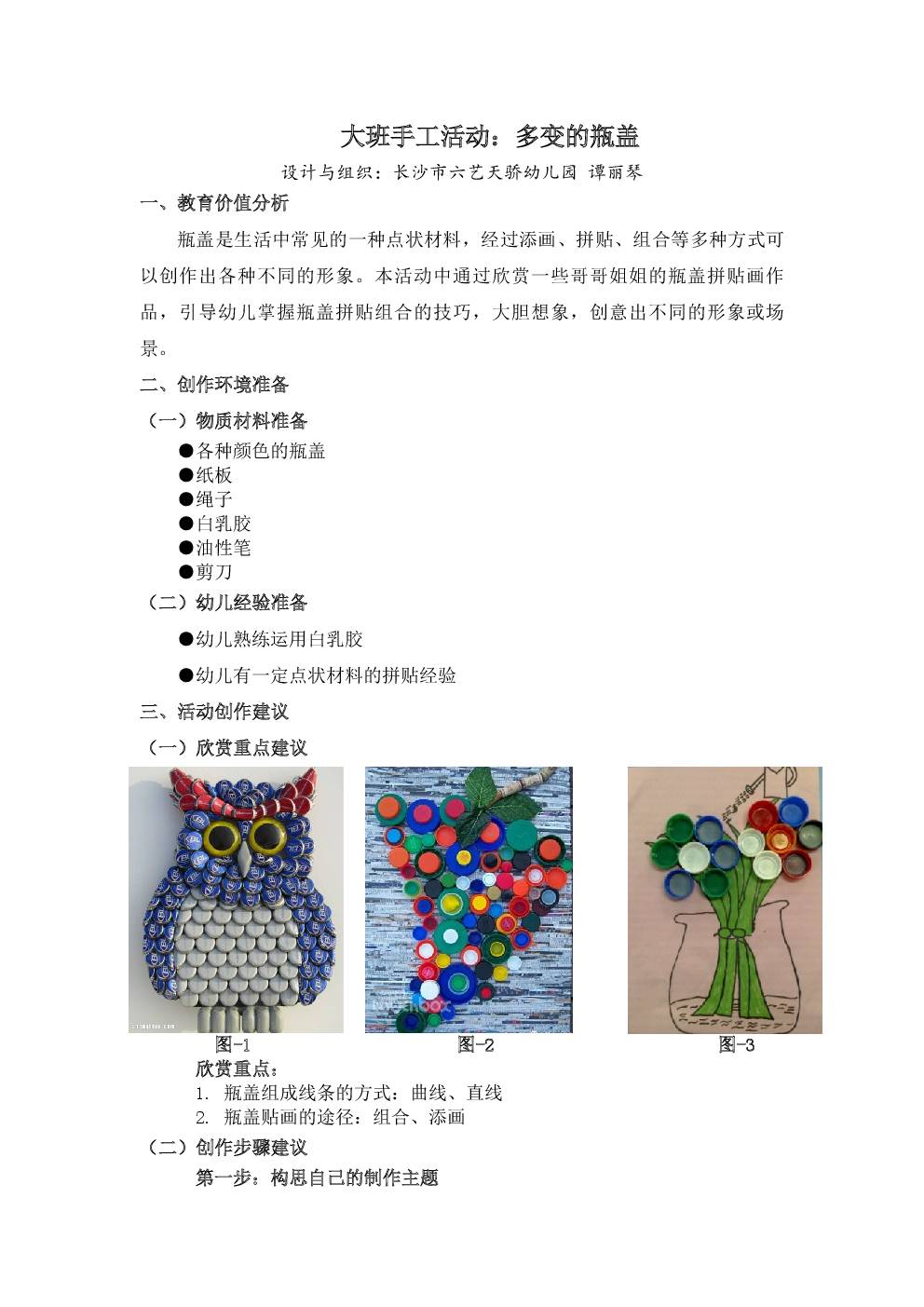 大班手工活动:多变的瓶盖