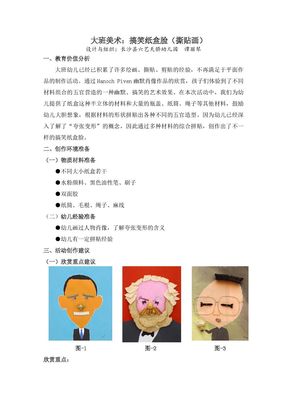 大班美术活动:搞笑纸盒脸(撕贴画)