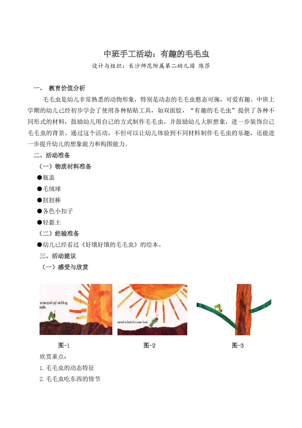 中班手工活动:有趣的毛毛虫